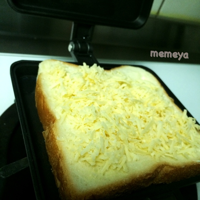 把兩片吐司兩面塗上發酵奶油,接著放上滿~滿~的起司ˋ,最後蓋上另一片吐司就能蓋上模兩面烘烤。